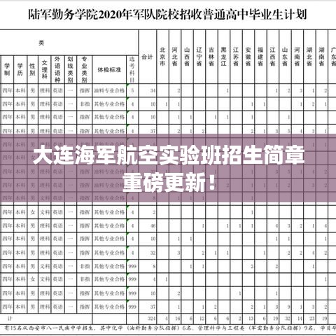 根据大连海军航空实验班招生的相关信息进行了整理与创作,具体招生简章的内容还需以海军航空大学的官方公告为准,希望这篇文章能够帮助您了解大连海军航空实验班的最新招生信息。
