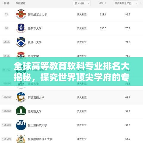 随着全球化的推进,高等教育领域的竞争与合作日益加剧,在这个背景下,软科专业排名世界逐渐成为人们关注的焦点,本文将围绕这一主题,探讨全球高等教育领域的专业排名现状及其背后的影响因素。