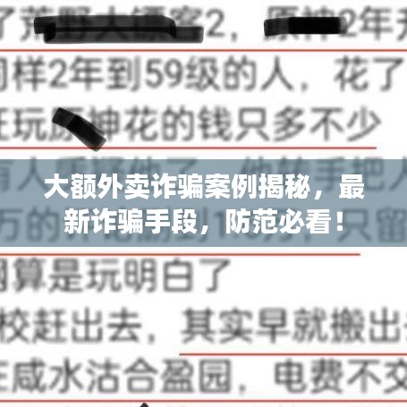 随着互联网技术的不断发展,外卖行业迅速崛起,方便了人们的生活,不法分子也利用这一行业特点,进行各种欺诈活动,本文将介绍一些最新的大额外卖诈骗案例,以提高公众对此类犯罪的警惕性。