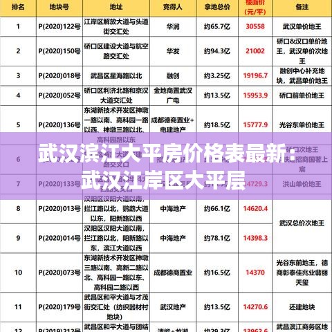 武汉,作为中国中部的重要城市,近年来房地产市场持续升温。其中,滨江大平房因其独特的地理位置和优越的居住环境,成为众多购房者眼中的香饽饽。本文将为您揭秘武汉滨江大平房价格表的最新动态,帮助您了解当前市场行情。