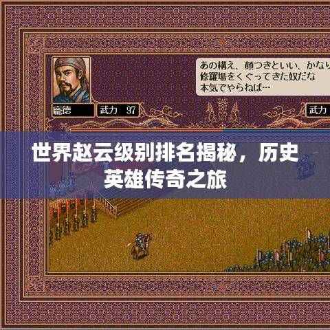 在历史的长河中,总有一些英雄人物因其卓越的事迹和传奇般的经历而备受瞩目,赵云,作为三国时期蜀汉的重要将领,以其非凡的武艺和忠诚的品质赢得了人们的尊敬和敬仰,在世界范围内,赵云的级别排名如何呢?我们将一起探寻这一历史英雄的传奇。