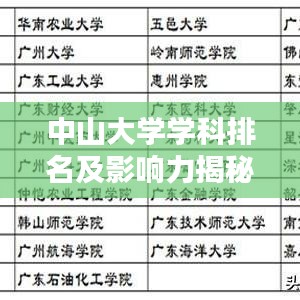 中山大学作为国内一流的高等学府,其学科实力及全球排名一直备受关注,随着全球化和教育国际化的不断推进,中山大学在各个领域均取得了显著的成绩,其学科世界排名逐年提升,彰显了其在国内外教育领域的卓越地位。