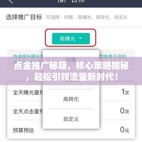 点金推广作为一种高效、精准的推广方式,已经受到广大企业和个人的青睐,通过掌握点金推广的最新攻略和核心策略,我们可以轻松引领流量新时代,在实际操作过程中,我们需要关注目标用户、遵守法律法规、注重用户体验等方面,以实现最佳的推广效果,希望本文能为你带来实用的帮助,让我们一起努力,共创辉煌!