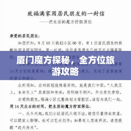 厦门,这座美丽的滨海城市,以其独特的魅力吸引着无数游客,你不仅可以感受到浓厚的文化氛围,还可以享受到美丽的自然风光,魔方,作为一种智力游戏,也能在这里找到许多爱好者的聚集地,本文将为你呈现一份厦门魔方旅游攻略,带你领略这座城市的魅力。